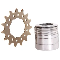 Zeer goed gesorteerde singlespeed kit, die 7 spacers heeft in 3 verschillende maten. Dit betekent dat, welke naaf u ook gebruikt, niets een perfecte kettinglijn in de weg staat.